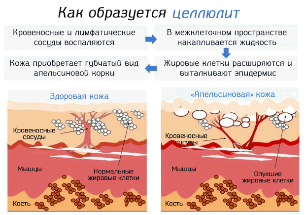 La cellulite est une manifestation visuelle notable d'une augmentation locale des cellules graisseuses sous la peau, qui s'accompagne de modifications de la microcirculation tissulaire. L'excrétion des déchets par ces organismes s'arrête.