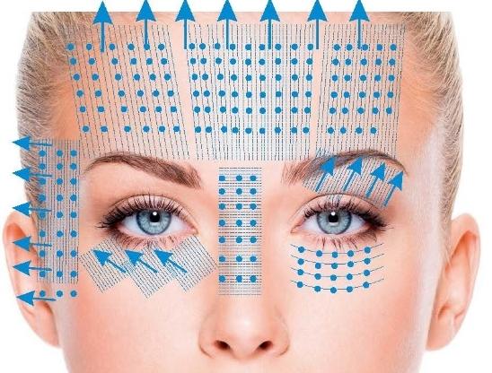 - Les injections sont effectuées le long des lignes de massage du visage.