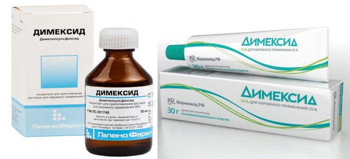 - Dimexide - 1 cuillère à soupe solution prête à l'emploi (rapport 1: 7).