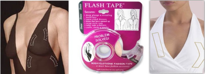 Plusieurs méthodes peuvent être utilisées pour empêcher l'exposition publique des seins lorsque le décolleté est trop profond. L'encolure peut être fixée avec du ruban adhésif double face. Coupez de petites bandes de Velcro et collez le bord intérieur de la découpe avec elles, en reculant d'un demi-centimètre. Ensuite, la robe est enfilée et les bords de l'encolure sont attachés à la poitrine au niveau souhaité.