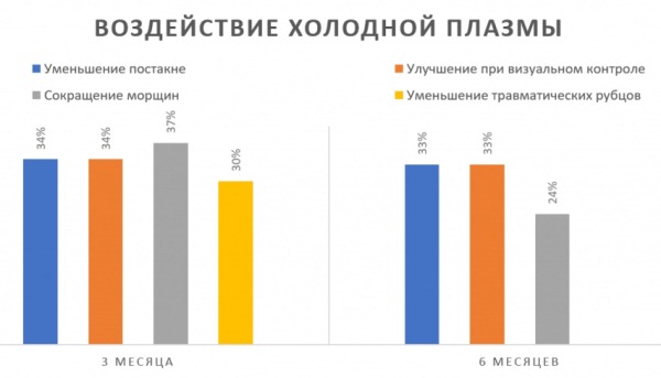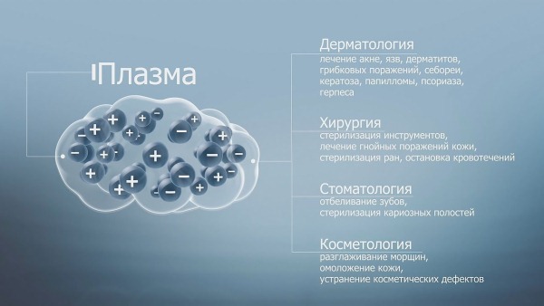 Le plasma froid permet de rajeunir l'épiderme et, grâce à ses propriétés antiseptiques, est utilisé pour éliminer les microorganismes pathogènes de la peau (champignons, bactéries ou virus). Le résultat est perceptible 10 à 14 jours après la première séance et s'intensifie sur 4 mois. En raison de sa nature multidirectionnelle, il est utilisé en médecine et en cosmétologie.
