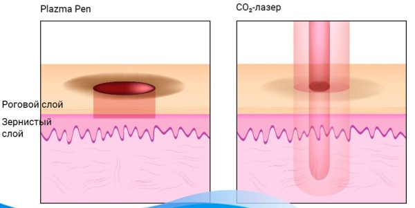 - le plasma a un léger effet peeling (nettoyant) des couches supérieures de la peau, sans endommager l'épiderme.
