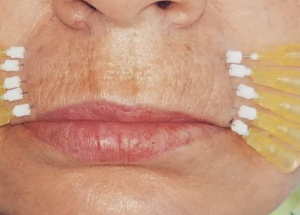 Les rides du sac au-dessus de la lèvre supérieure peuvent également être éliminées en utilisant la méthode de la mésothérapie - administration d'une injection thérapeutique sous la peau. En conséquence, la régénération cellulaire commence, la production d'élastine et de collagène est normalisée. Cela aide à réduire les rides fines. La bio-revitalisation est l'une des méthodes de mésothérapie (l'acide hyaluronique est utilisé pour la correction).