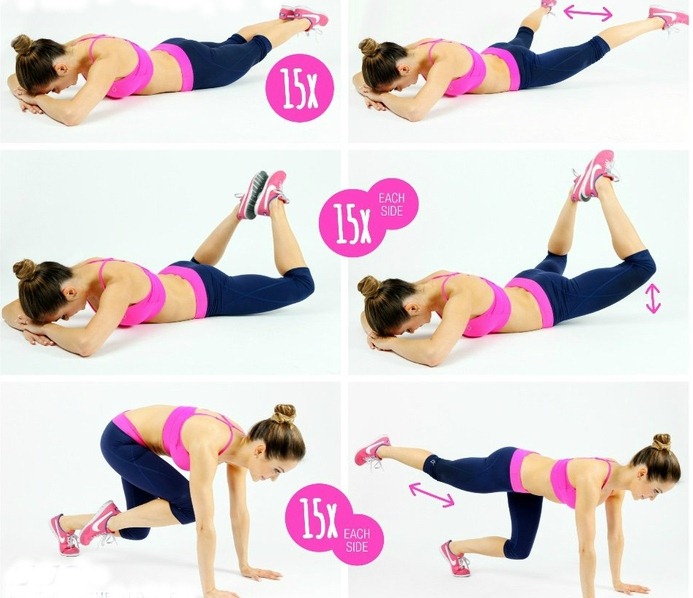 Abduction des jambes sur les côtés et dans le dos - 15 pour chaque direction.